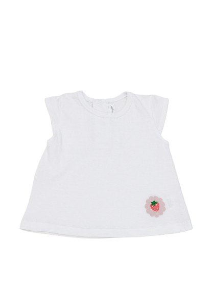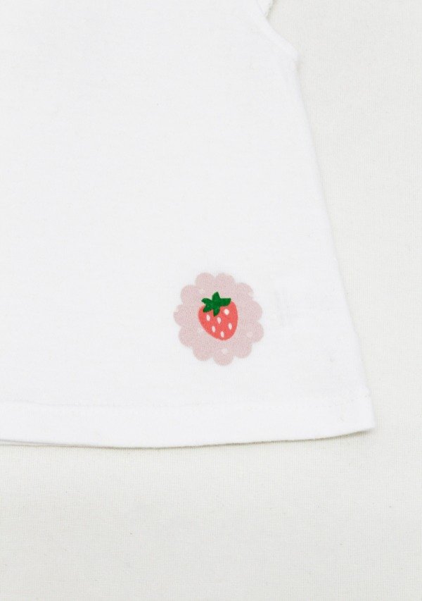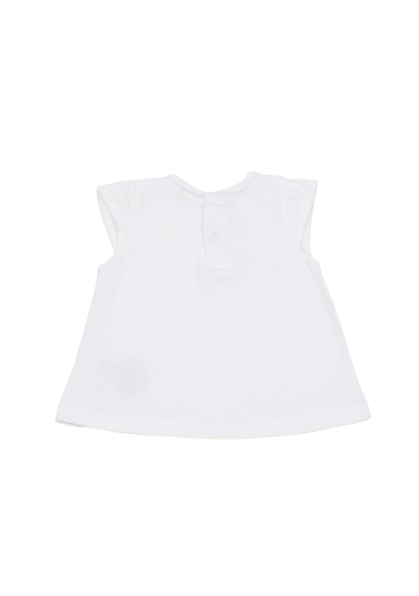 Remera manga volado de algodón blanco con lunares.Tiene picot al tono en cuello y mangas. Detalle de estampa.