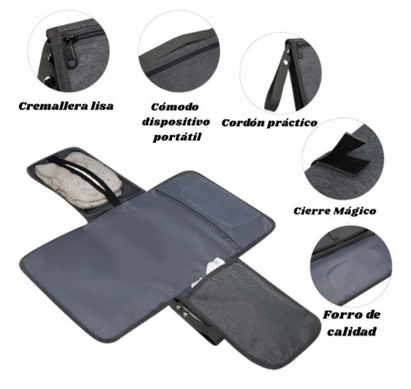 Cambiador muy práctico y cómodo. Se pliega fácilmente y se convierte en un pequeño bolso con espacio para guardar lo esencial!